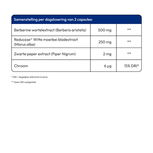 | Reducose® Witte moerbei bladextract (Morus alba) | 250 mg (**) |
