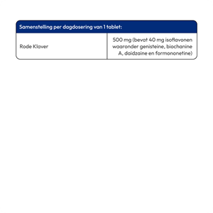 | Rode Klaver | 500 mg (bevat 40 mg isoflavonen waaronder genisteine, biochanine A, daidzaine en formononetine) |