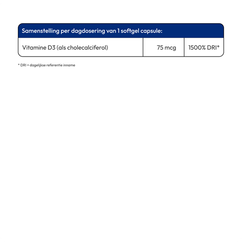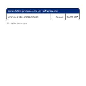 - Hoog gedoseerde vitamine D (75 mcg/3000 IE)