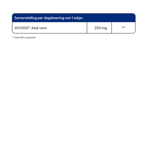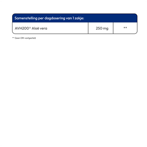 Eén zakje nupure nucolsan® bevat 250mg van de werkzame stof AVH200® van de Aloë vera plant ´Aloe barbadensis Mill´.