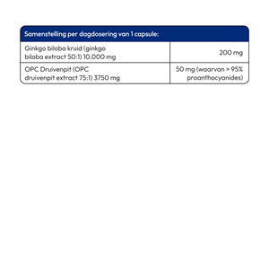 | Ginkgo biloba kruid (ginkgo biloba extract 50:1) 10.000 mg | 200 mg |