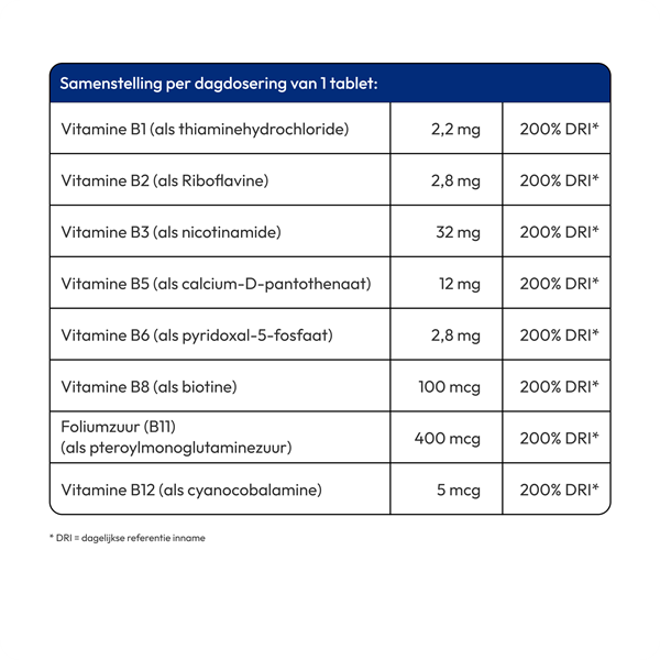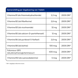 - Combinatie van alle belangrijke B-vitaminen