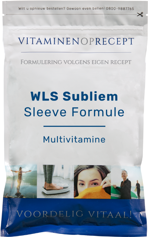 De WLS Subliem Sleeve formule is een speciale en uitgekiende multivitamine in capsulevorm, ontwikkeld om het gehalte aan vitaminen en mineralen uit voeding aan te vullen. Door de ‘nieuwe maag’ is de behoefte aan aanvulling groter. U kunt minder eten en haalt daardoor ook minder vitaminen en mineralen uit voeding. Deze aanvulling wordt geadviseerd om, naast een evenwichtig voedingspatroon, voldoende voedingsstoffen binnen te krijgen.